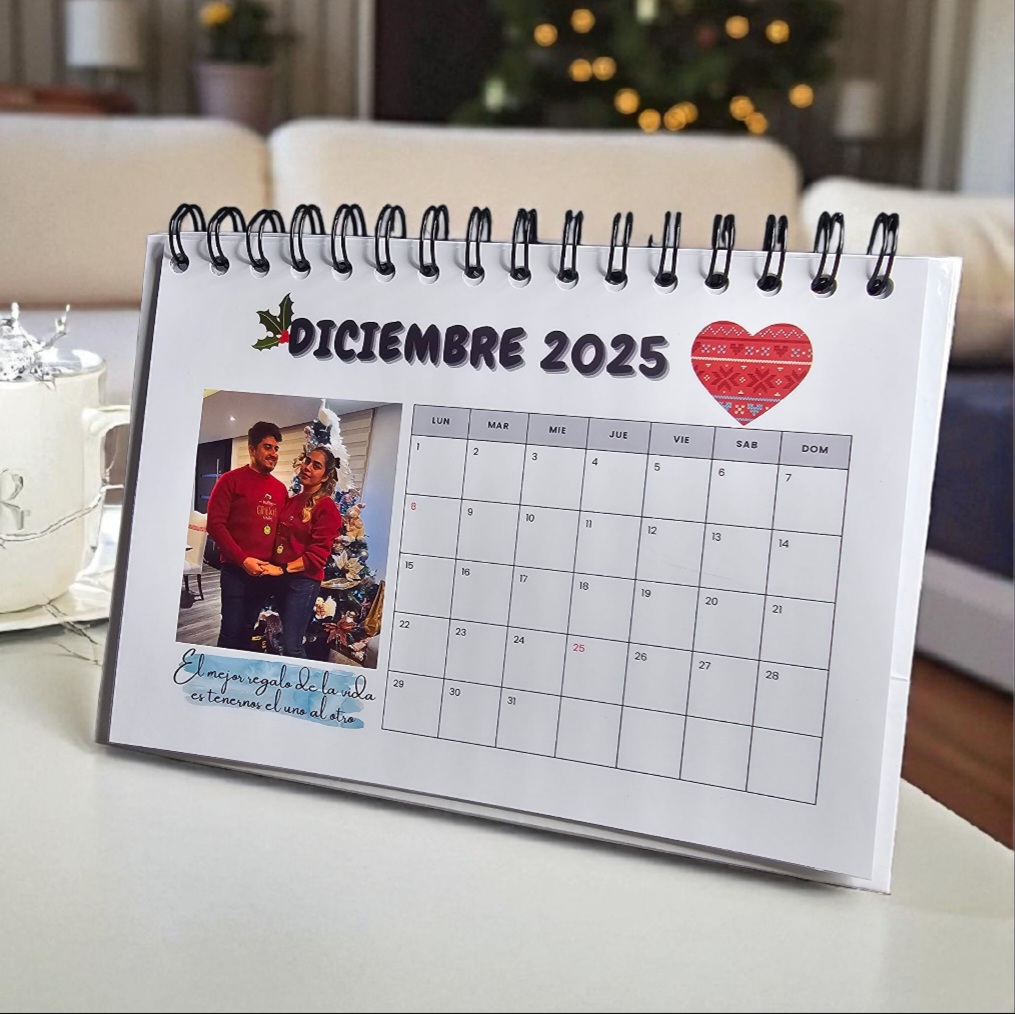 Diseña tu calendario único con 12 fotos y frases diferentes, marca tus fechas especiales y elige desde qué mes quieres que empiece.